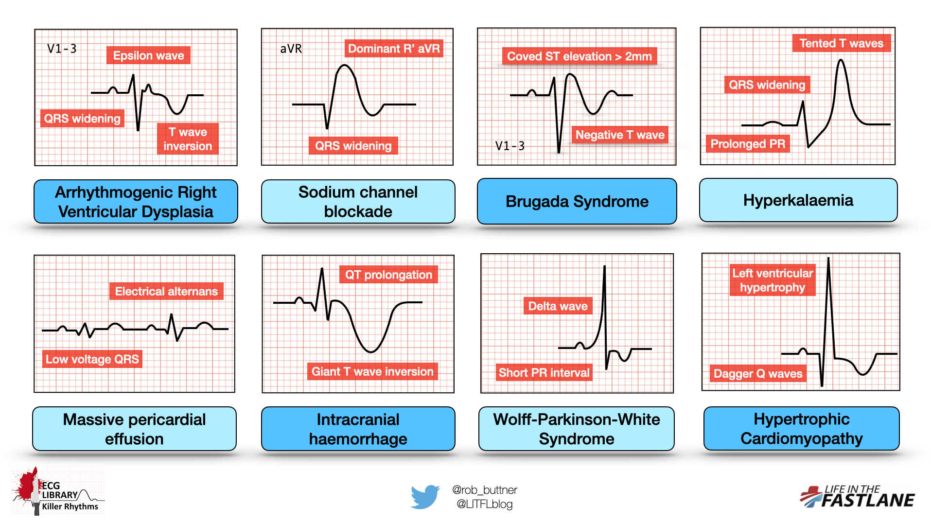 - Remember that the ECG in isolation is rarely sensitive or specific enough to make a firm diagnosis — all of these killer ECG patterns require clinical correlation and/or confirmatory investigations